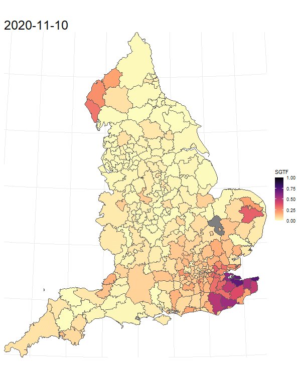9/ One doesn't even necessarily need to invoke these phylogenetic arguments. We've seen how quickly this strain has taken over in the UK. We know it has not yet taken over in France. If it had existed in France before the UK, it would be the dominant strain there already.