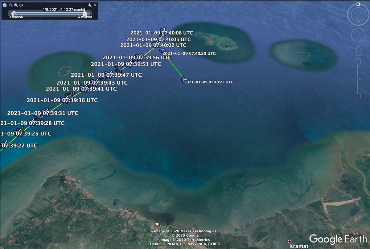 Fio: É dureza acordar com notícias de acidente aéreo. Um Boeing 737-500 da Sriwijaya Air caiu 4 minutos após a decolagem de Jakarta. É muito cedo para falar qualquer coisa, muito menos para ter vídeo no canal. Os dados do @FlightRadar24 indicam uma rápida perda de altitude (1)