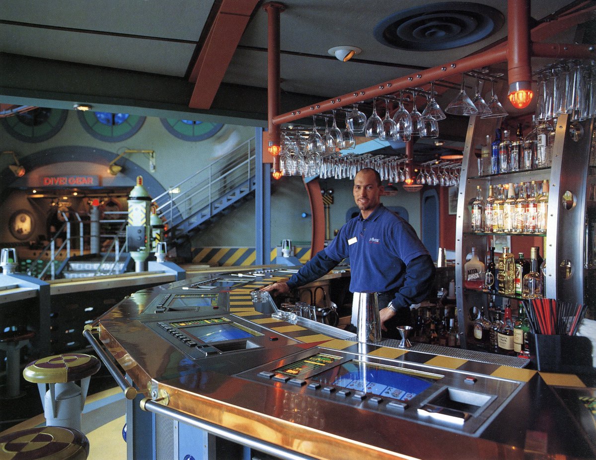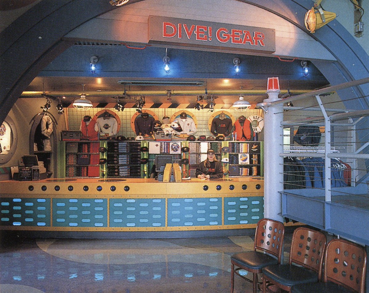 While I don't have much information on this, the books mention an hourly 'dive simulation' accompanied by alert sounds, flashing lights and underwater scenes on the screens. Also, in requisite 90s fashion, there was a gift shop at the exit.