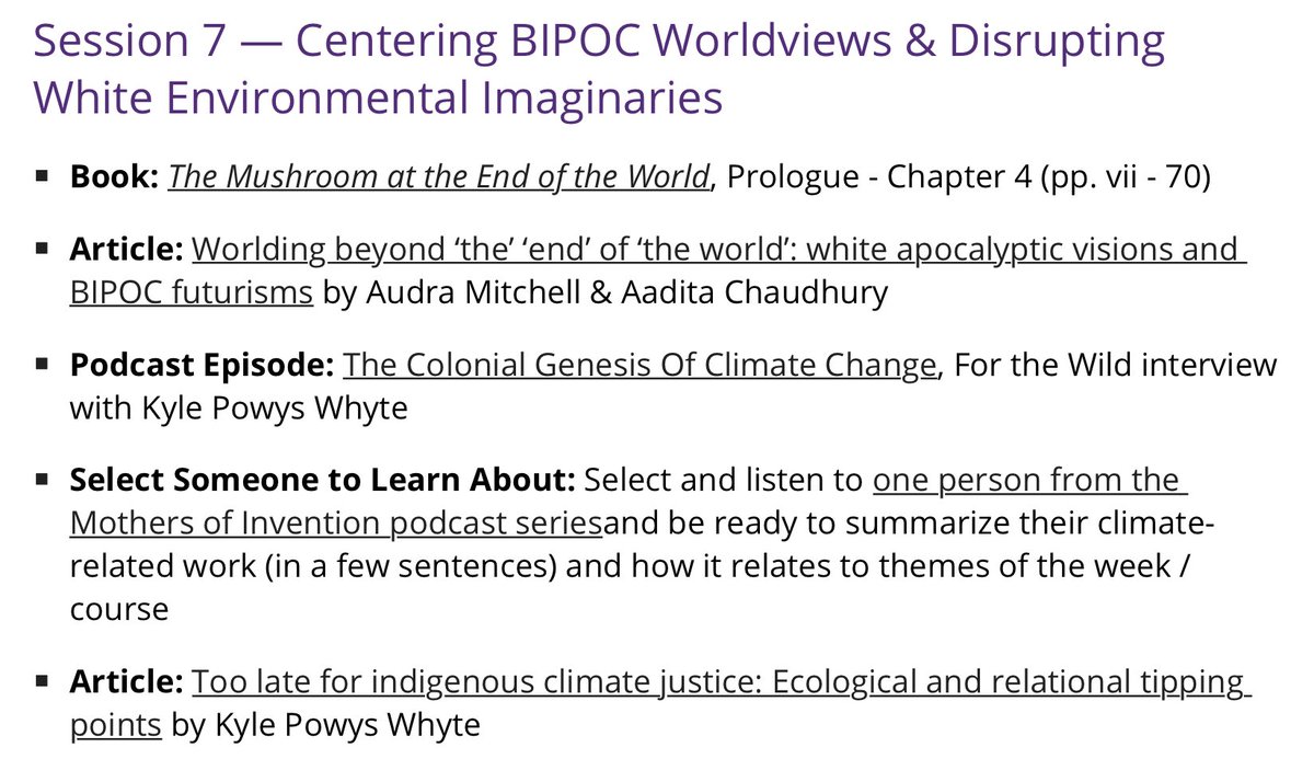 In Session 7 of #UWClimateEd, we will continue exploring how to “Center BIPOC Worldviews and Disrupt White Environmental Imaginaries” in education efforts about #ClimateCrisis response.