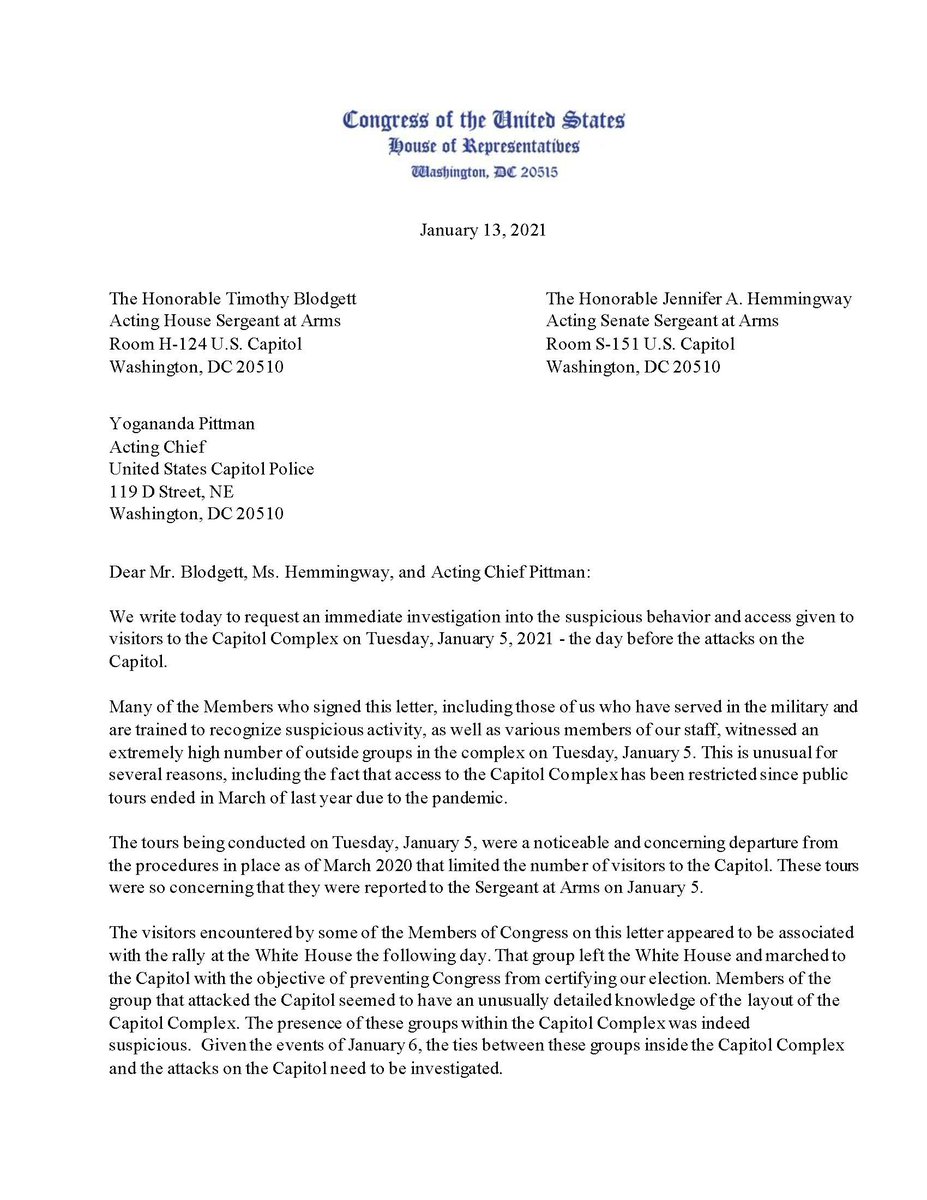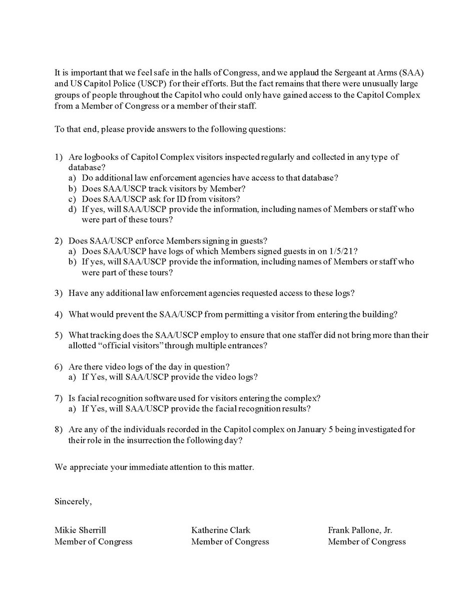 34 Members of Congress asked the Senate & House sergeants-at-arms & the @CapitolPolice detailed questions about the “extremely high number of outside groups” at the @uscapitol on January 5, when tours of the building were suspended: forbes.com/sites/alisondu…
