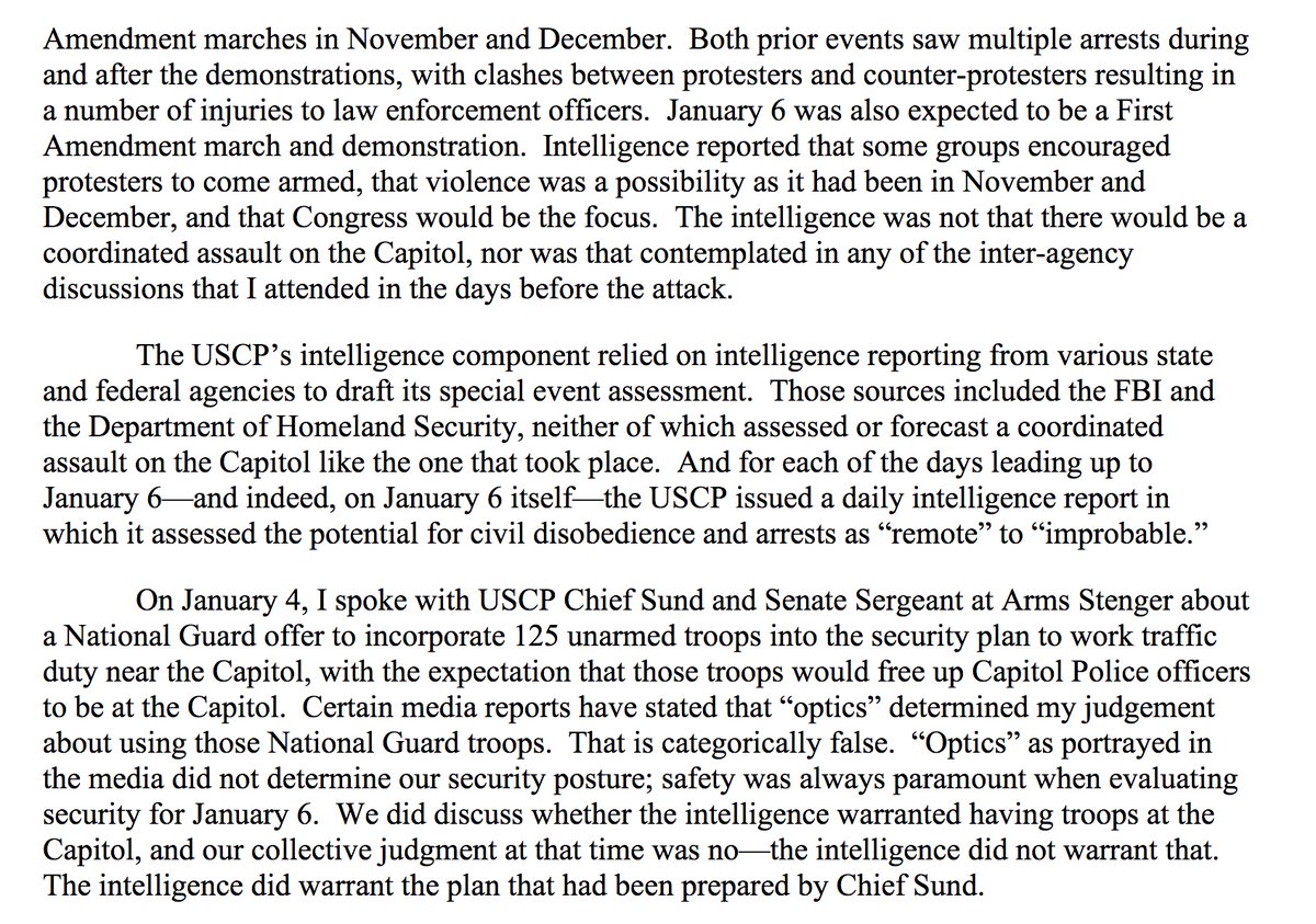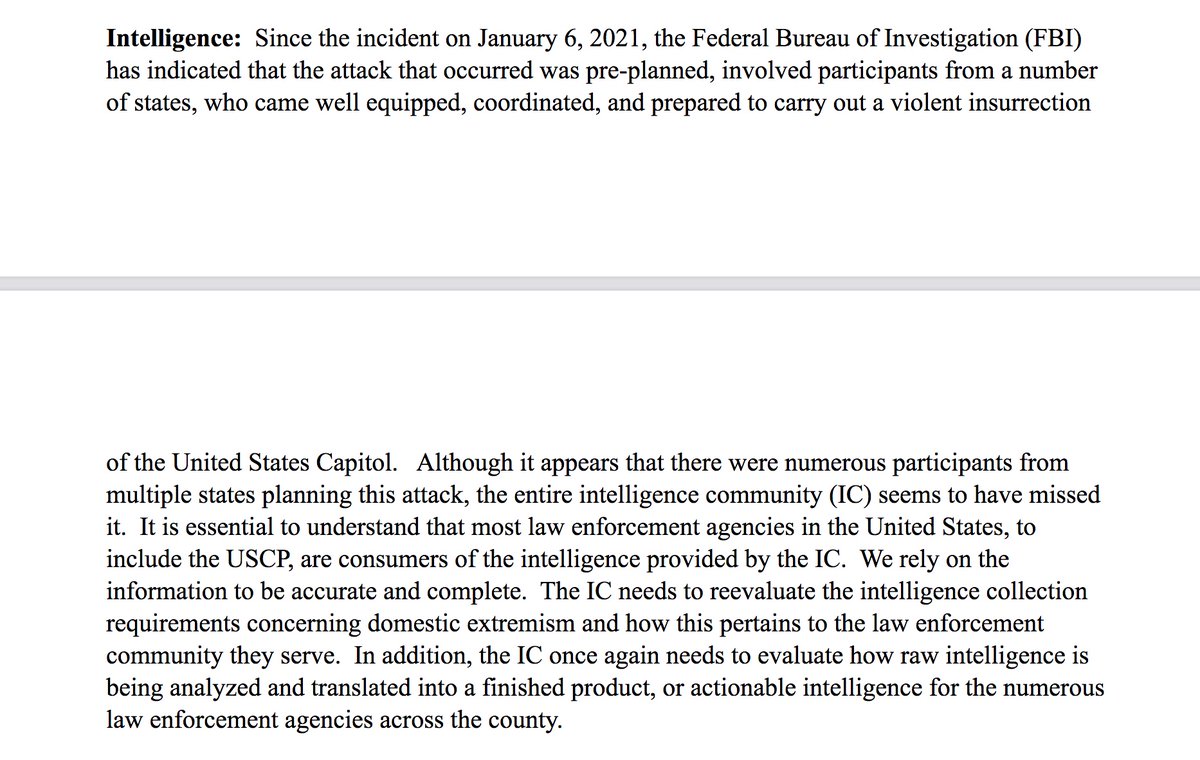 In his written testimony, former @CapitolPolice Chief Sund told Congress the failure to prevent @uscapitol against an armed insurrection were not the result of poor planning but intelligence failures rules.senate.gov/imo/media/doc/…