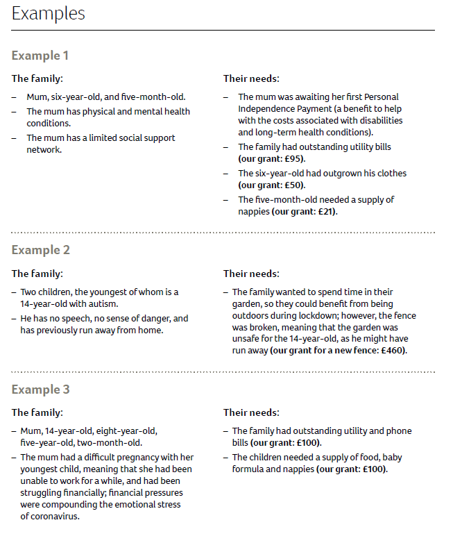 The report includes some examples of how the Emergency Fund helped families