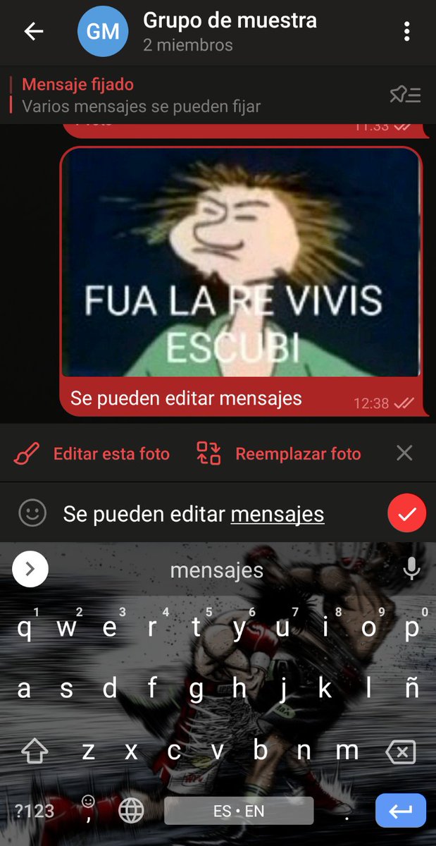 Se pueden editar mensajes hasta 48 hs después de enviarlos. Si el mensaje tenía una foto, puede editarse la foto con el editor, o reemplazar la foto si te equivocaste al elegirla.
