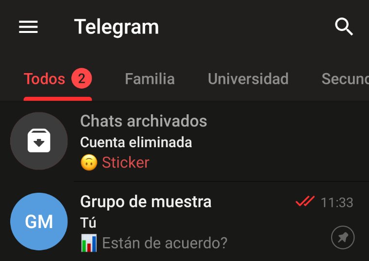 Se pueden crear carpetas de chats para tenerlos más organizados y además fijar chats por carpeta para tenerlos a mano si son los que más utilizamos