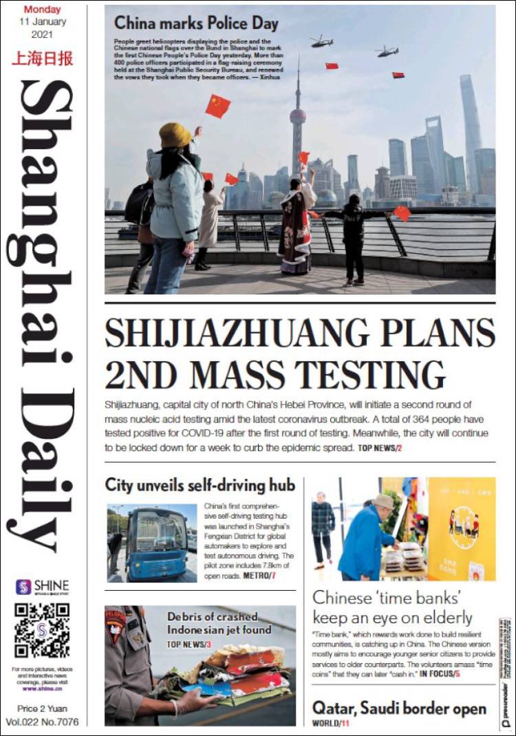 Del 6 al 8 de enero, más de 10,25 millones de residentes en la ciudad se hicieron la prueba de COVID-19, dijo Ma Yujun, alcalde interino de Shijiazhuang, en una conferencia de prensa.