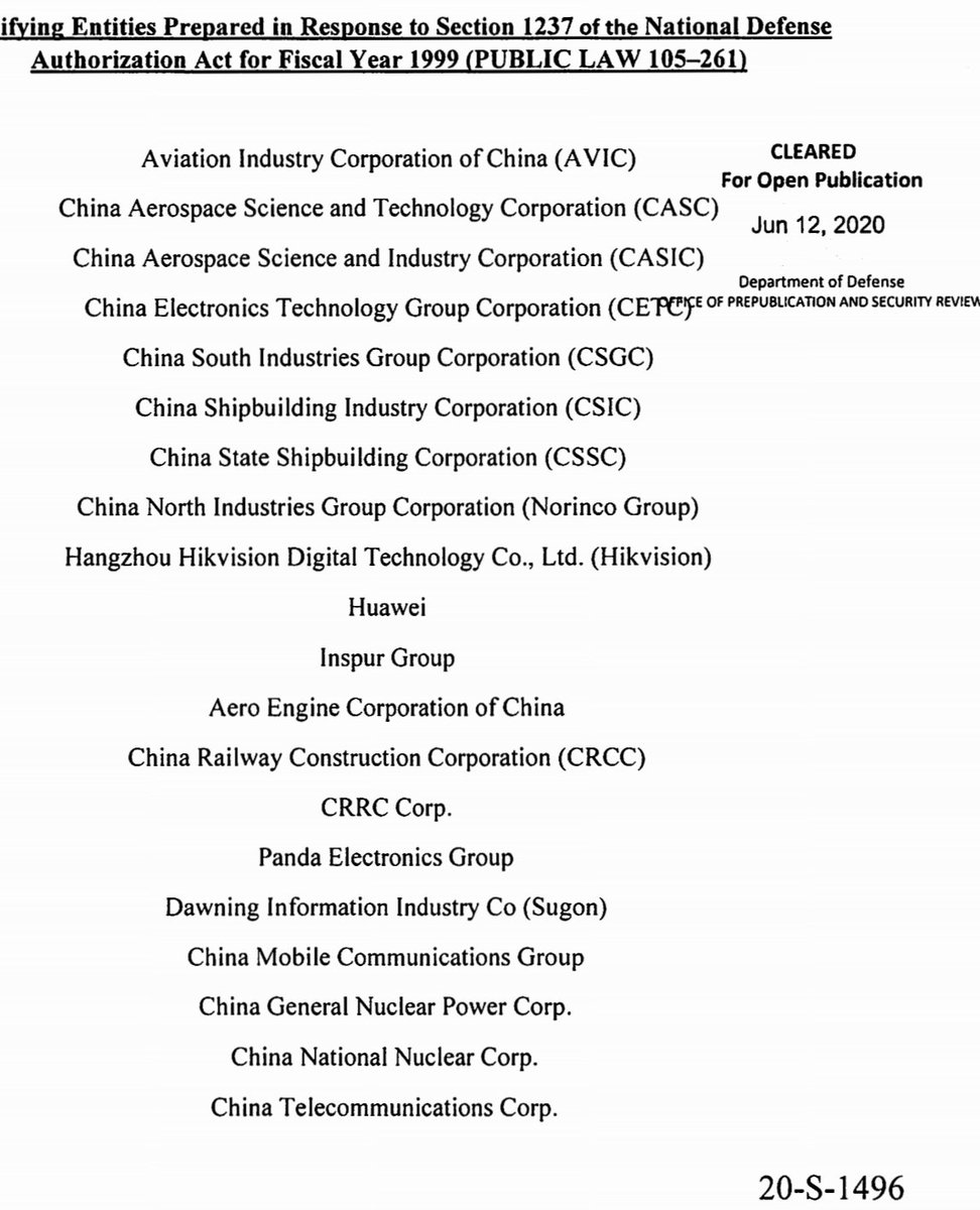(i) any person that the Secretary of Defense has listed as a C____ C____ Military company operating directly or indirectly in the United States or in any of its territories or possessions pursuant to section 1237 of Public Law 105-261,