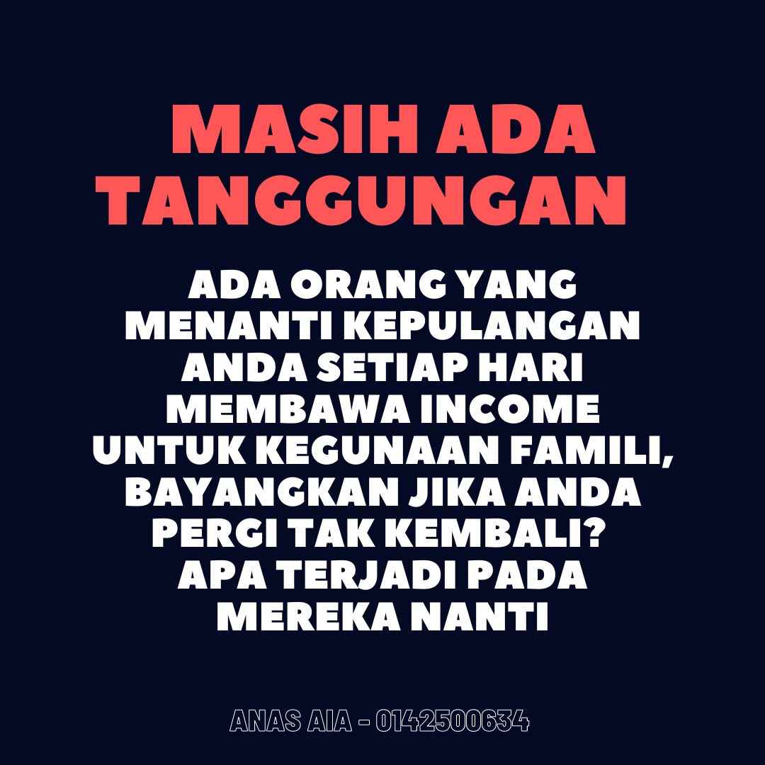 Bayangkan selama ni mereka bergantung harap pada income kita. Once kita TPD atau Lumpuh, kita pula yang mereka perlu tanggung. Berat mata memandang berat lagi bahu yang memikul.