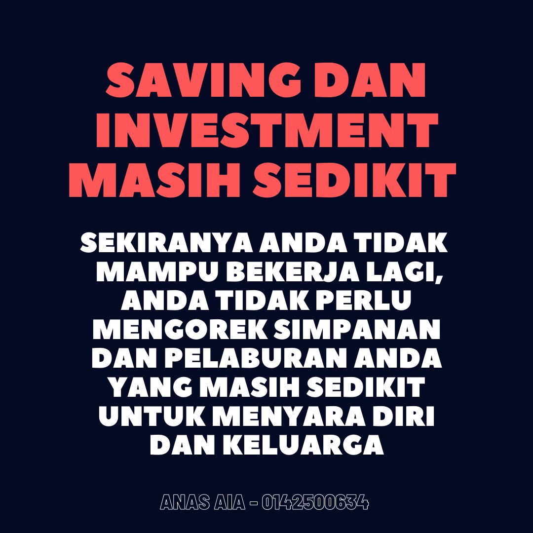 Kalau duit dalam account pelaburan/simpanan korang dah banyak dan mampu beranak pinak sehingga cukup keperluan setiap bulan, maka korang tak perlu ada lah Income Replacement Plan.