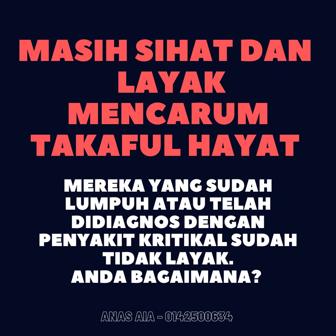Akhir sekali, Takaful Hayat ni bukanlah untuk semua orang, sebab orang yang dah ada pre-existing illness/disability memang tak layak untuk apply tau.