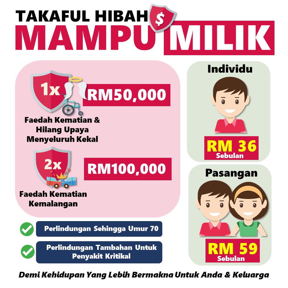 Tahukah anda, serendah Rm 30 sebulan anda mampu menyediakan Takaful Hayat, manfaat Rm 50K sekiranya mati atau TPD sehingga umur 70 tahun.