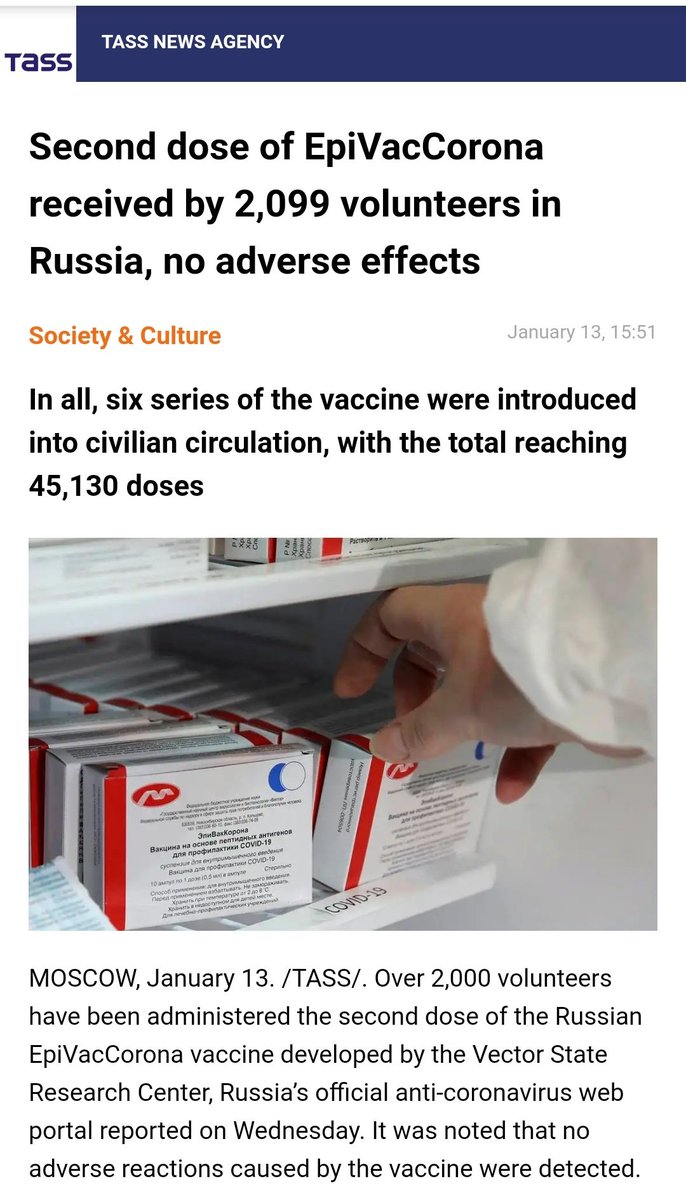 💉 Поступил вопрос по статусу вакцины ЭпиВакКорона от новосибирского центра Вектор, на основе синтетических пептидов SARS-CoV-2.