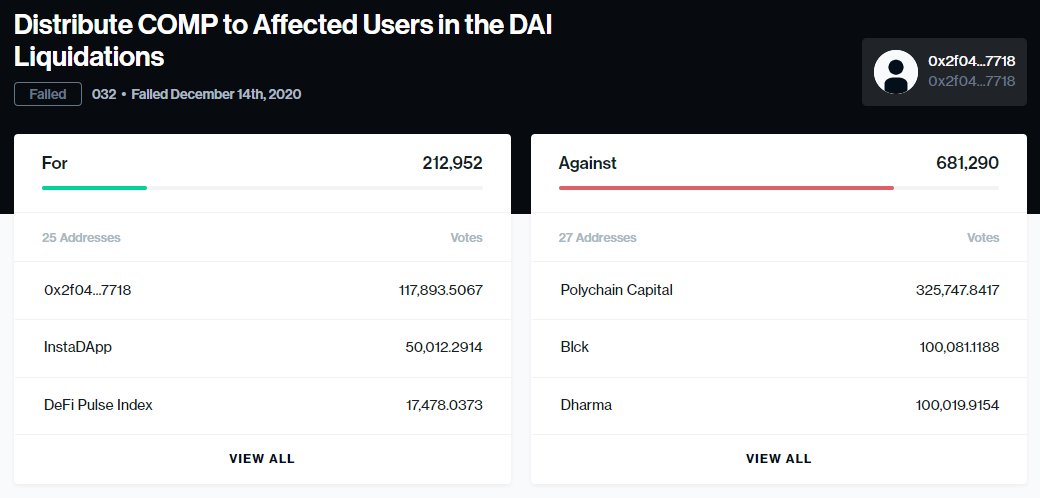 "Against" included Polychain, Argent, Dharma, Pantera Capital, ConsenSys, Calvin Liu of Compound.