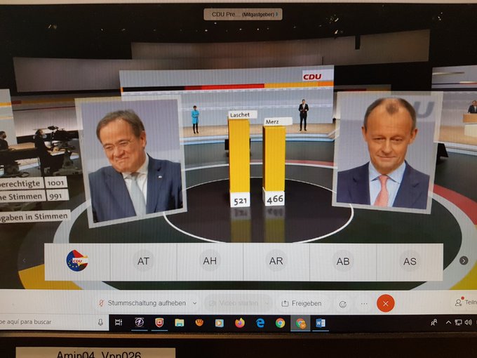 Armin Laschet es elegido presidente de la CDU. Laschet es considerado un continuista de la política de Angela Merkel.