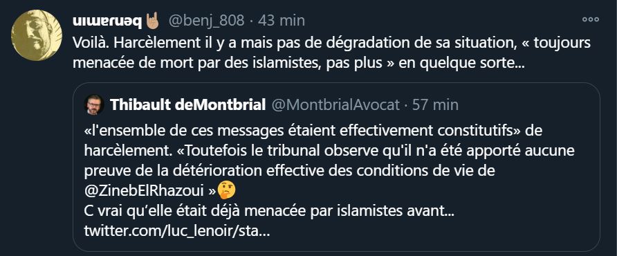 Je tombe sur ça... Punaise encore l'extrême droite... Zineb el rhazoui 'à sans doute pas fait exprès... Elle ne doit pas le connaître.