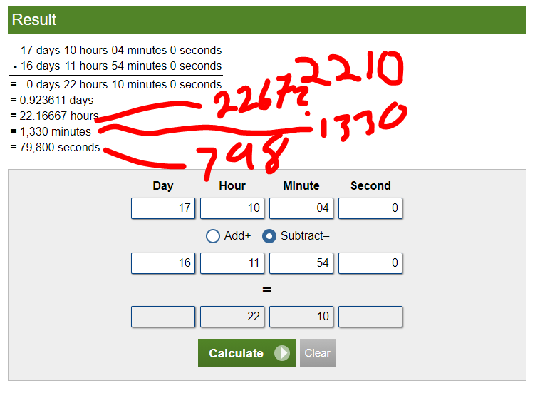 The time inbetween the two looks like this. So we'll look at these, 2210, 1330, 798, I'll do 2267(?) as an extra, had to mess with the order to achieve the result.