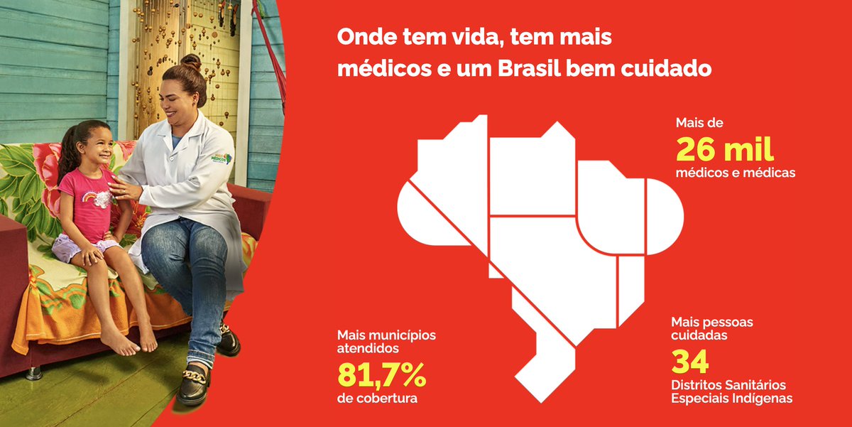Quando assumimos a atual gestão, o Mais Médicos tinha 13,7 mil profissionais em atuação. Hoje tem o dobro: 26,8 mil. Nossos médicos estão atuando nas áreas onde há maior vulnerabilidade social. Também ampliamos a presença em territórios indígenas.