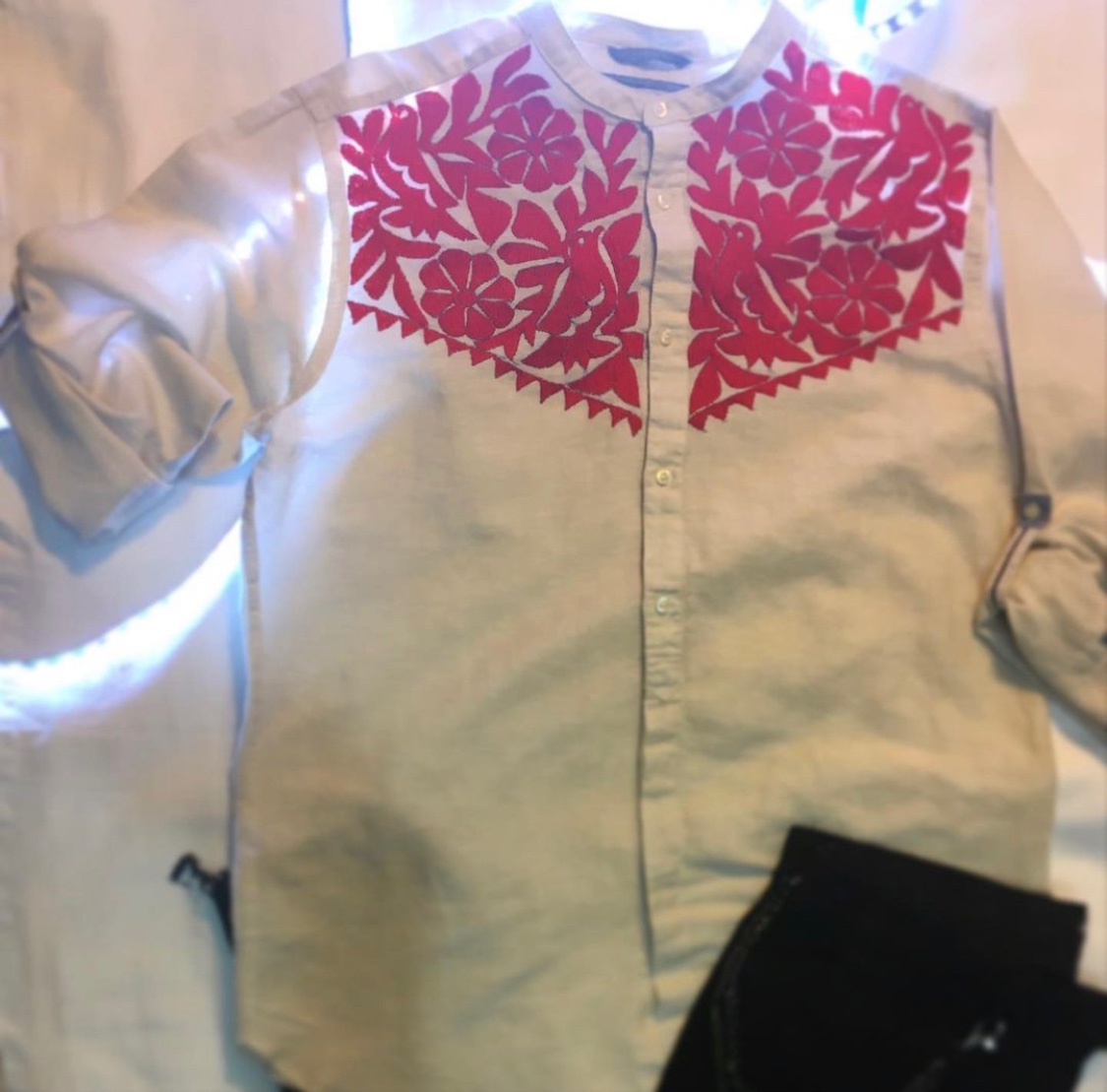 Taller familiar nacido hace más de 28 años en San Sebastián Tutla, en los Valles Centrales de Oaxaca. producían sólo manteles pero se dieron cuenta de que los retazos podían ser útiles y los usaron en prendas de hombre y mujer con ellos. instagram.com/manosdeluz.oax/