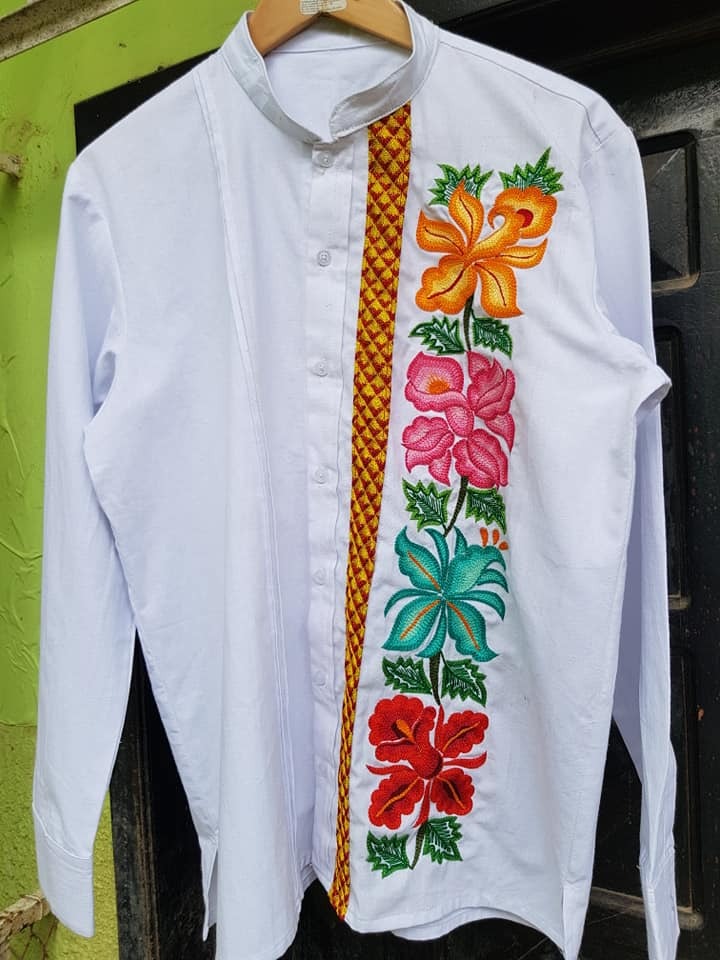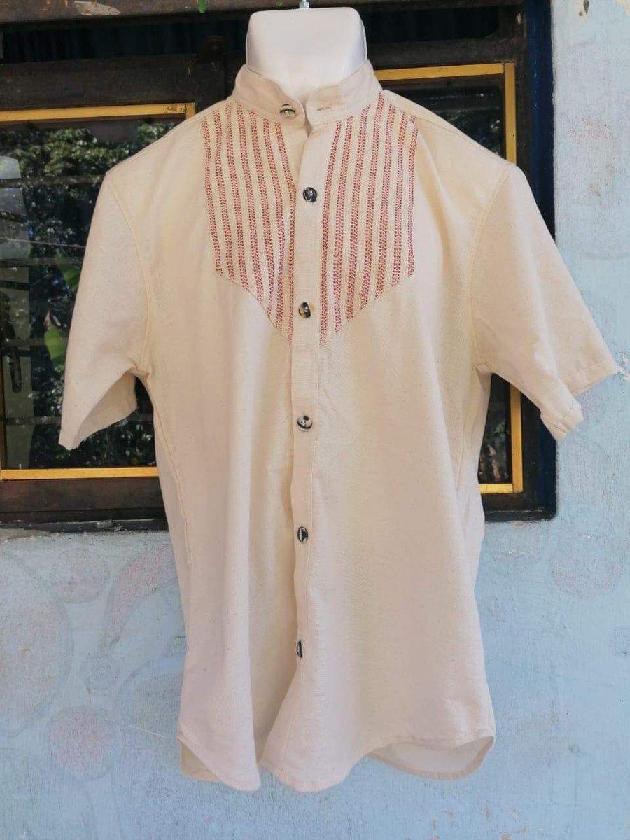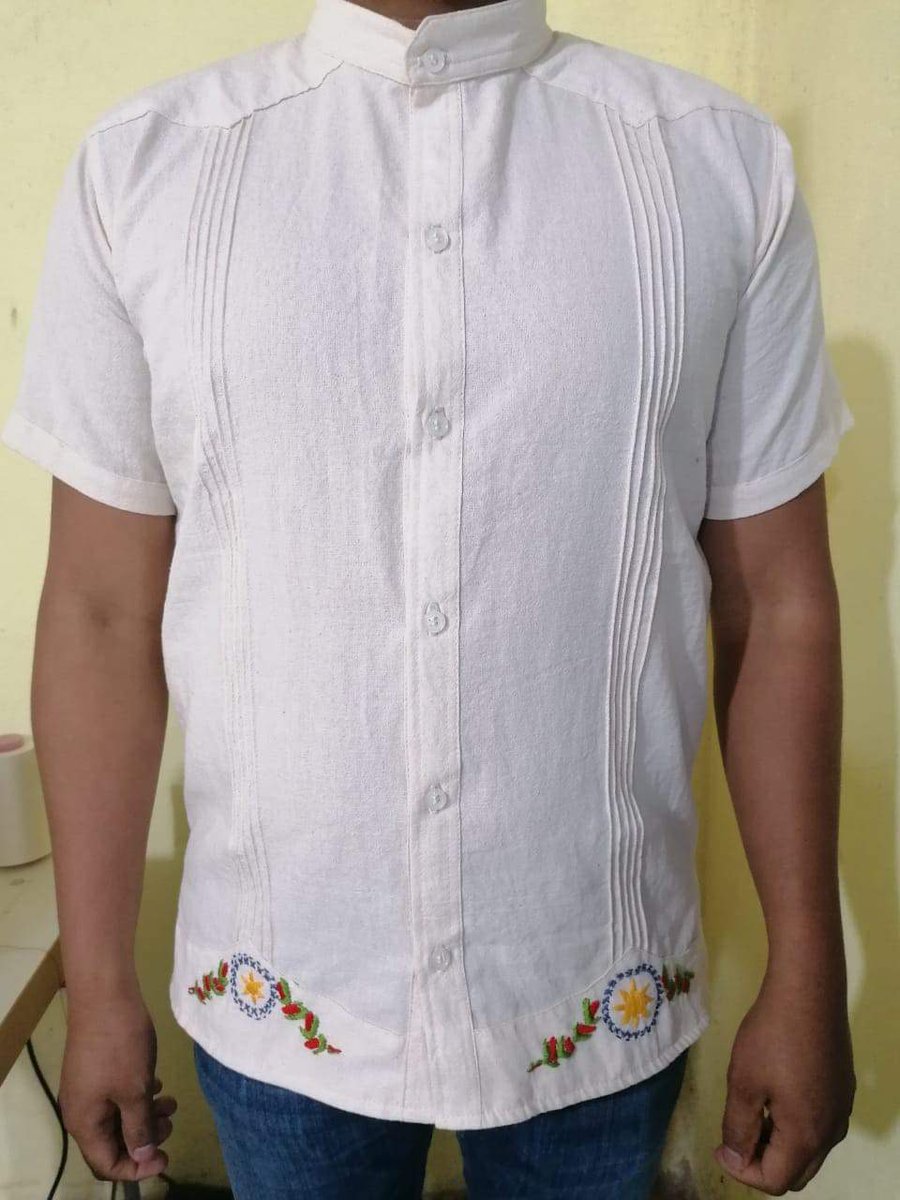 Realizan camisas bordadas y con aplicaciones de telar de cintura con diferentes hilos de algodón .