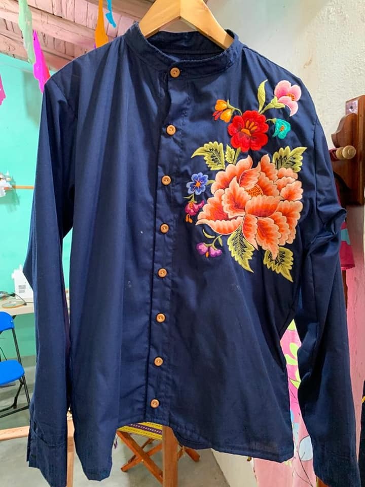 Cooperativa de artesanos de Tenango de Doria, en la sierra hidalguense, que plasman los mundialmente conocidos tenangos en camisas, sudaderas y gorras para hombre. instagram.com/tenangos.noemi/ facebook.com/noemi.moctezum…