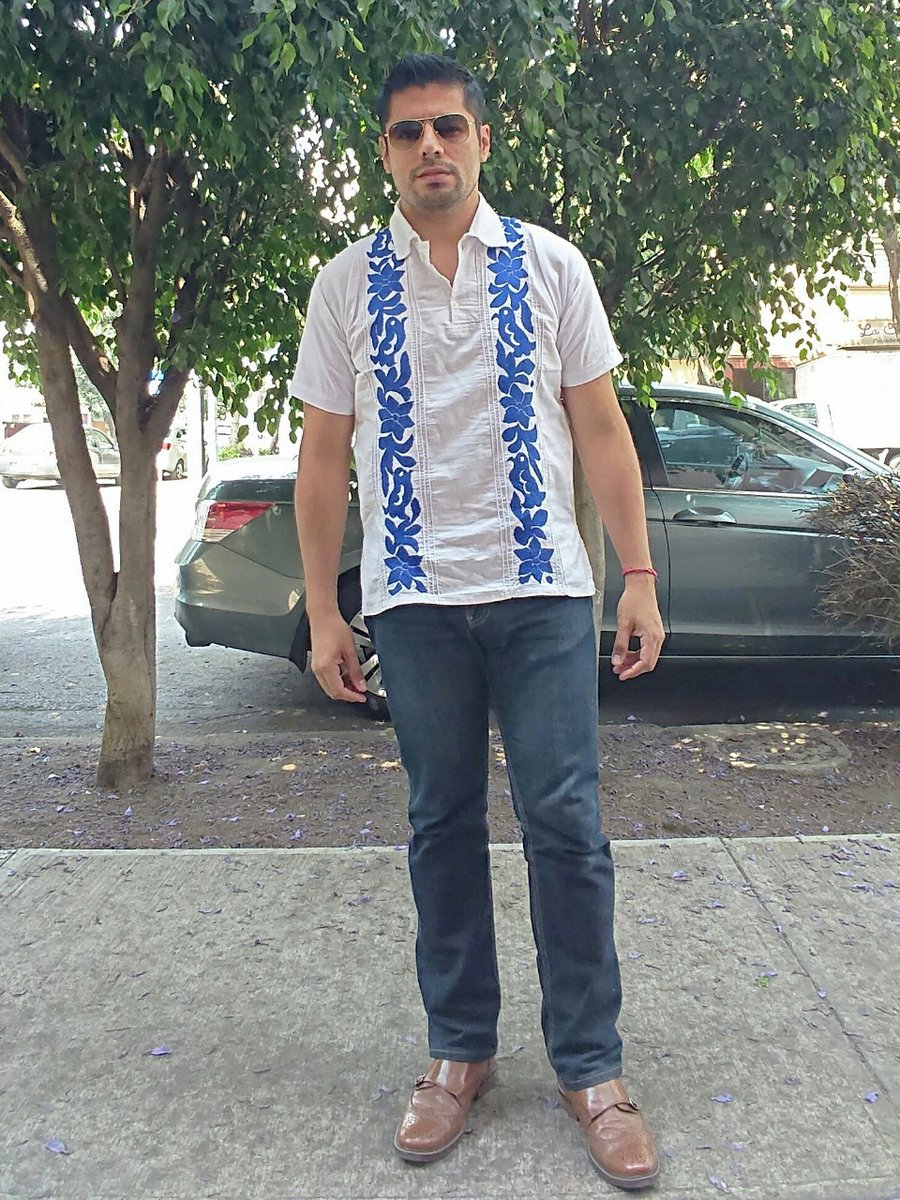 Artesano de Santo Domingo Tehuantepec, Oax, cuna de la Inmortal Sandunga. Borda hermosas camisas con motivos istmeños con ganchillo (llamado tejido) o aguja fina. facebook.com/charlievaldivi…