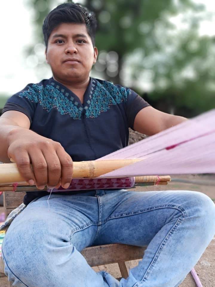Guillermo Julián López Barrios de La Joya del Mamey, Putla Villa de Guerrero, Oaxaca de 21 años es tejedor de telar de cintura, hilador de algodón nativo, también tintorero tradicional. Fundador de @janua_aa_nabaja_she_aa. instagram.com/janua_aa_nabaj…