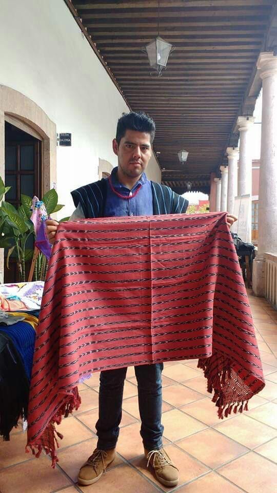 Rebocero mexiquense que ha aprendido técnicas de tejido y urdido para fabricar rebozos en telar de cintura, cuya versatilidad permite un uso casual o formal. facebook.com/rafael.garciaf…