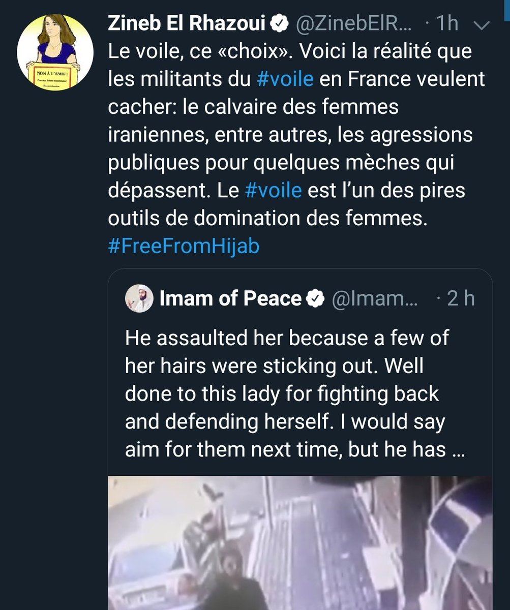 C'est marrant zinen el rhazoui est très critique sur les imams français. (voir ses attaques régulières contre Mohamed bajrafil) mais partage régulièrement ce zigoto.. Imam of peace.. Je fais recherche 🔎