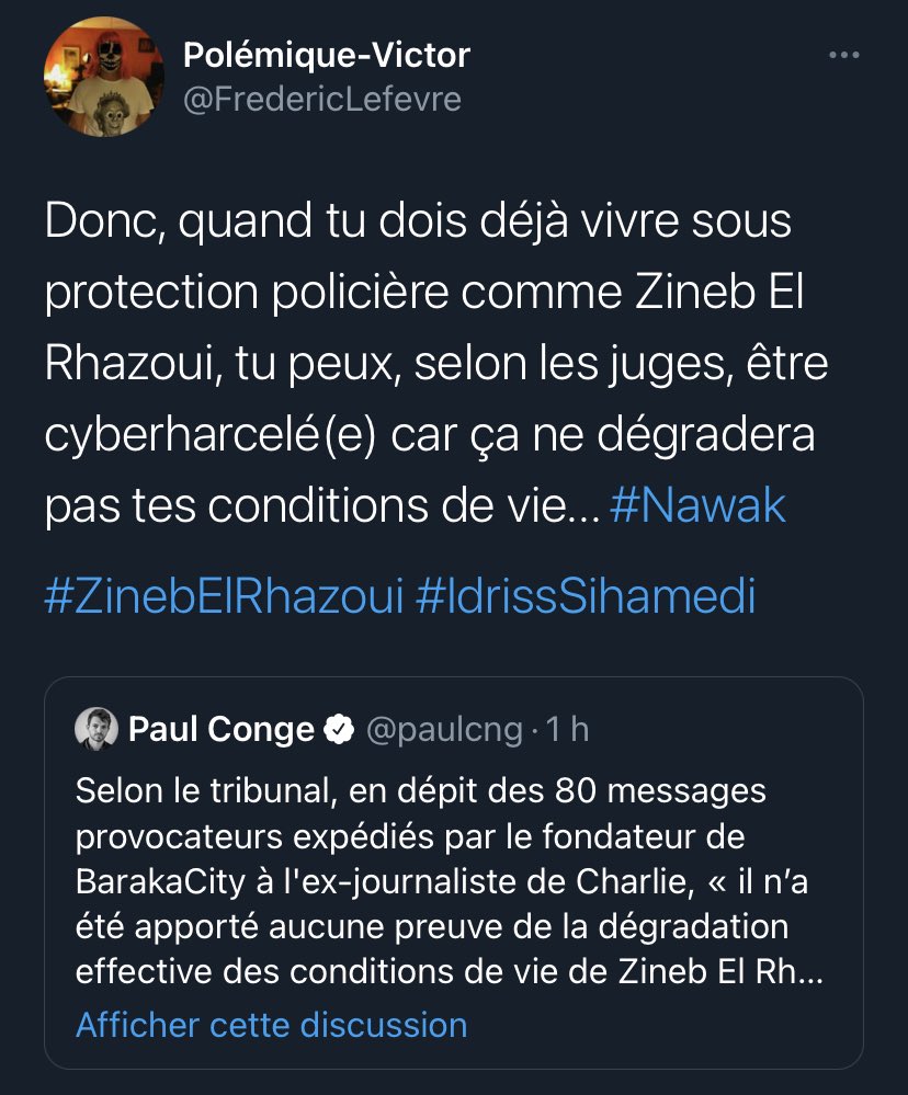 Je tombe sur ça... Punaise encore l'extrême droite... Zineb el rhazoui 'à sans doute pas fait exprès... Elle ne doit pas le connaître.