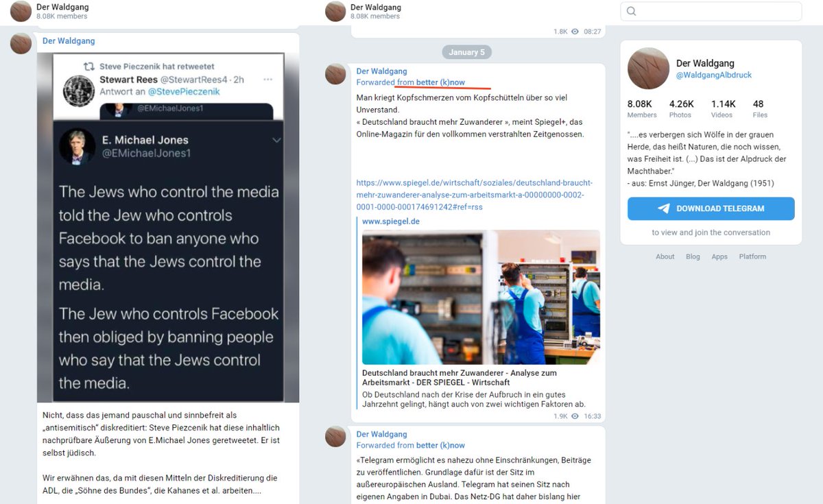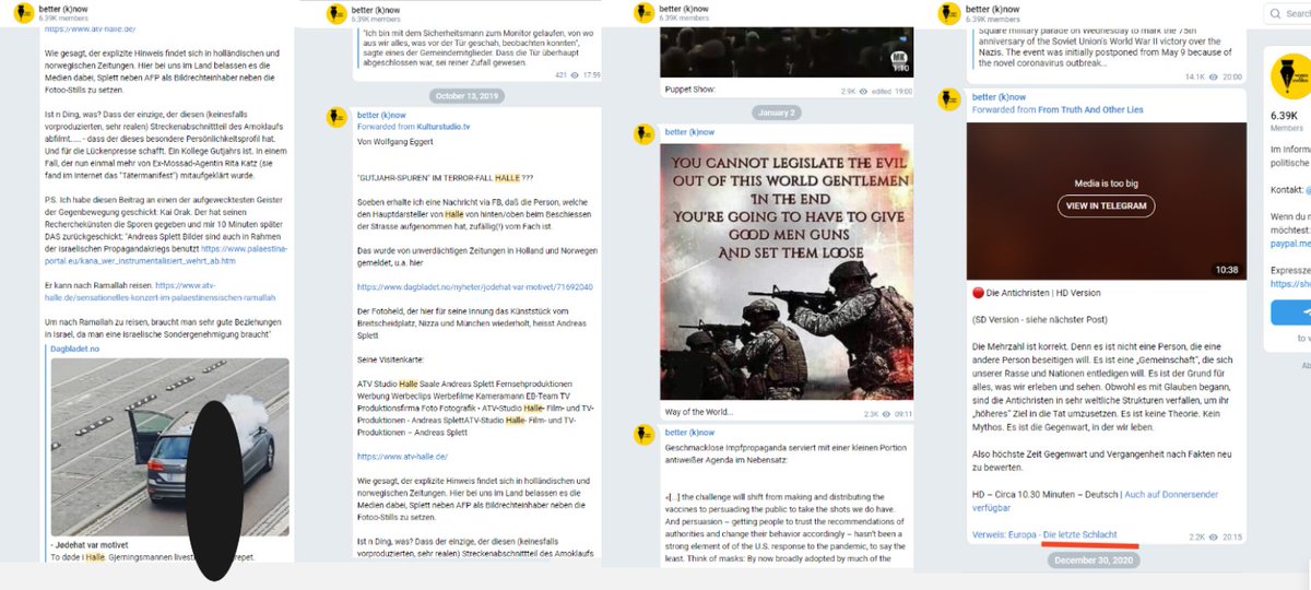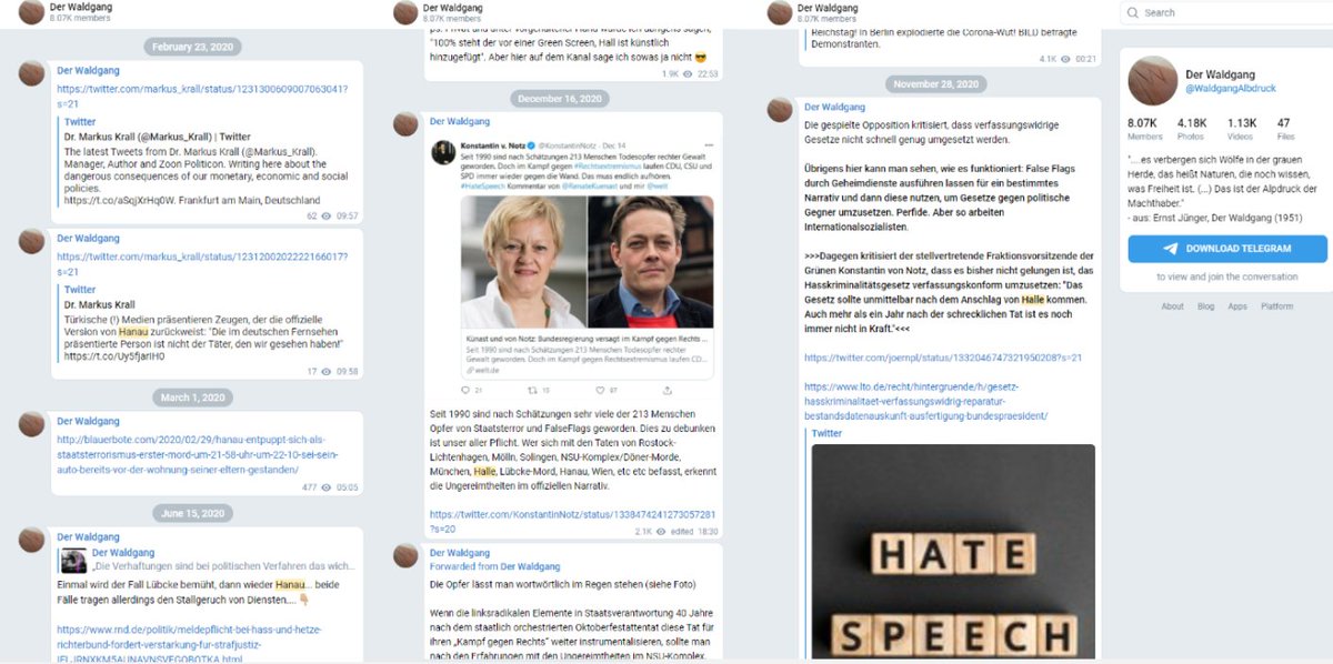 Ich skizziere hier nur einen kleinen (!) Ausschnitt aus einem Netzwerk von Telegramgruppen, die alleine über Kaisers Telegram Gruppe zu erreichen sind. Ein Klick reicht & wir befinden uns in digitalen Räumen,in denen #Antisemitismus & #Rassismus offen & aggressiv propagiert wird
