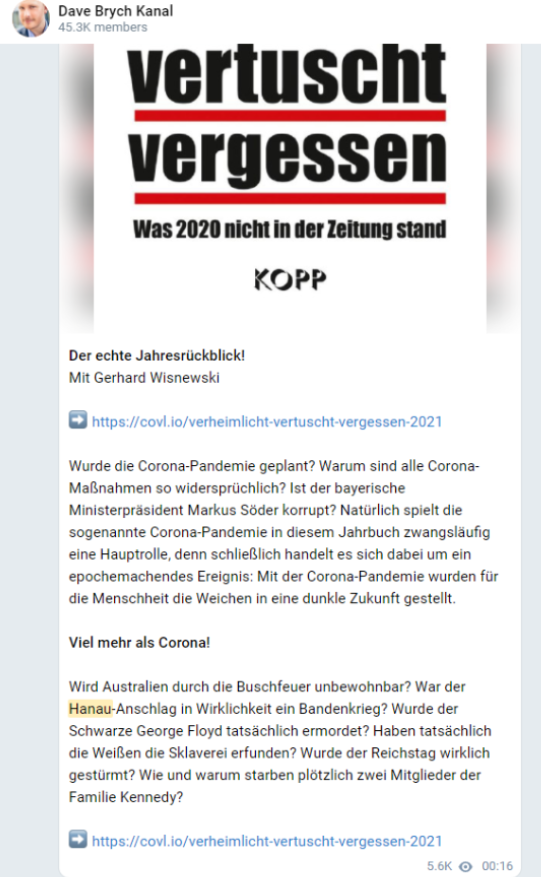 Das Jahr 2020 hat Demokratiefeinden einen Kick gegeben. Neue Netzwerke sind entstanden & man ist näher aneinandergerückt, um trotz Unterschiede (in Themen, Habitus, etc) gemeinsame Feindbilder weiter aufzubauen und Hass zu befeuern.