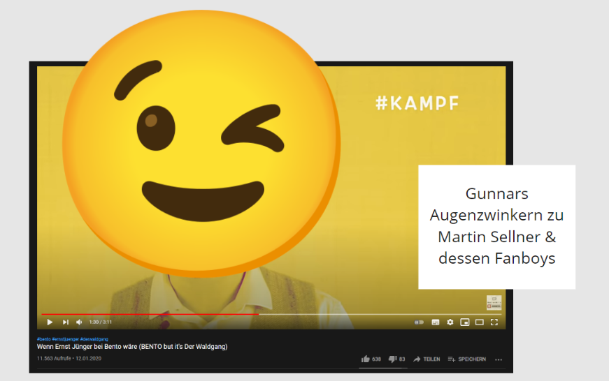 Zitat aus Kaisers diffusem Ernst Jünger-Fanboy-Video: „Seien wir doch wie Waldgänger. Fühlen wir wieder unser ganz ursprüngliches Verhältnis zur Freiheit. Lassen wir uns keine Übermacht durch das Gesetz vorschreiben.“