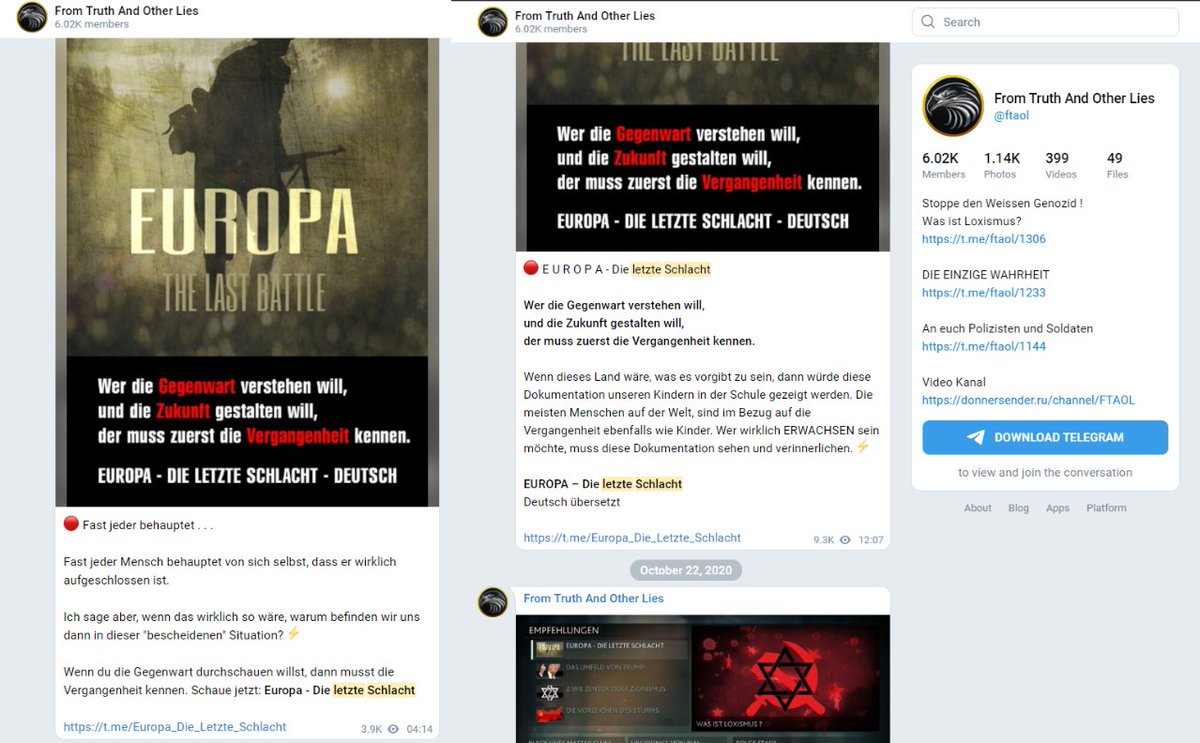 ‚weiße Genozid‘ = ‚der große Austausch‘. FTAOL ist ein ungeschminkter radikaler Neonazi. Der geteilte Content besteht aus aggressiver Rhetorik & fanatischem Judenhass. Sog. ‚Dokumentationen‘ werden hier offensiv beworben. ‚Der Volkslehrer‘ fühlt sich angesprochen. @Report_Antisem