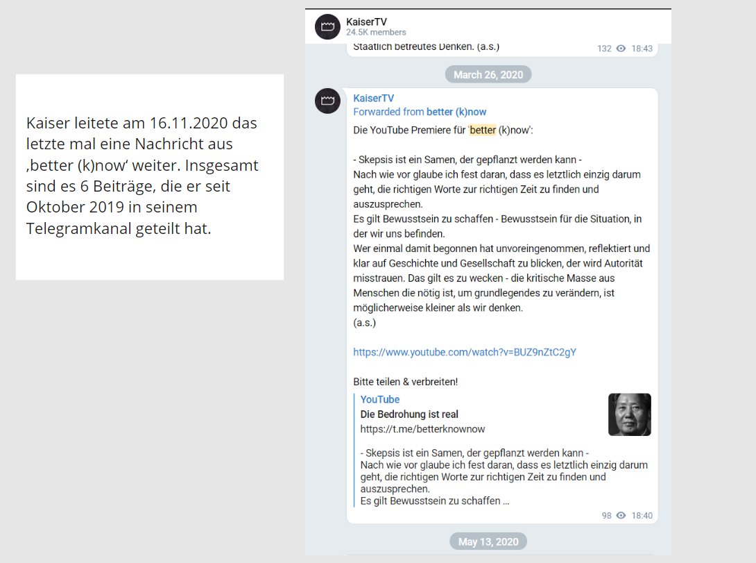 Kaiser teilt gerne mal Beiträge von better(k)now. Bewirbt sogar dessen YT Kanal. Dabei gehört die Gruppe zu vielen, die offen & aggressiv antisemitische Verschwörungstheorien verbreiten, inkl. Leugnung der Attentate in Halle und/oder Hanau. @Report_Antisem