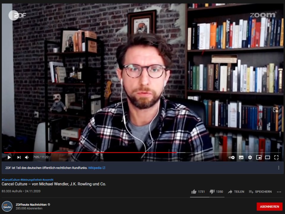 Und ja, solche Influencer wie GK dürfen offensichtlich auch in einem ZDF Beitrag über Cancle Culture vorkommen. Ist immer noch online und hat 83 k Aufrufe.