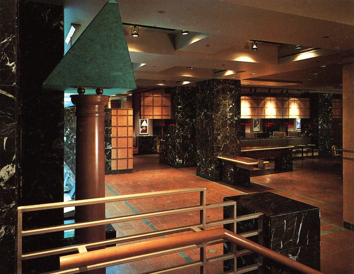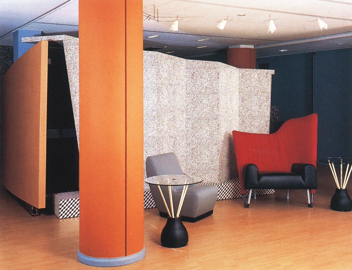 Designers literally copied Memphis Group, eg. this example of the 'Prisma Collection' by Milo Baughman' from the mid 80s. Additionally, it was used in corp. interiors like this one for Quatre Plus (1994).