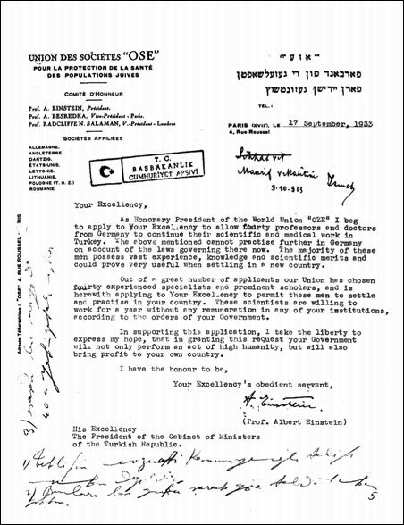 As #HolocaustRemembranceDay nears we should also refer to the fact that Einstein wrote a letter to Ataturk&asked him to let Jewish scientists work in Turkey as Germany was not safe. As a result, so many of them arrived in 🇹🇷worked freely, helped Turkish universities grow.