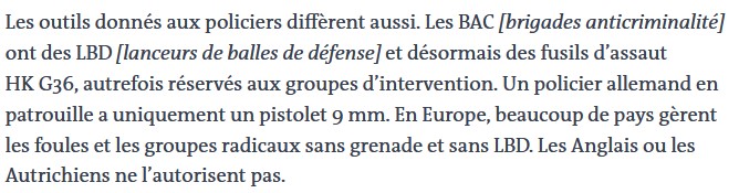 D’un côté, ces réformes seraient en France une avancée : savoir que la police ne peut pas user de certaines armes serait "rassurant" ; ces mesures rendraient les rapports avec la police sans doute un peu plus "supportable".