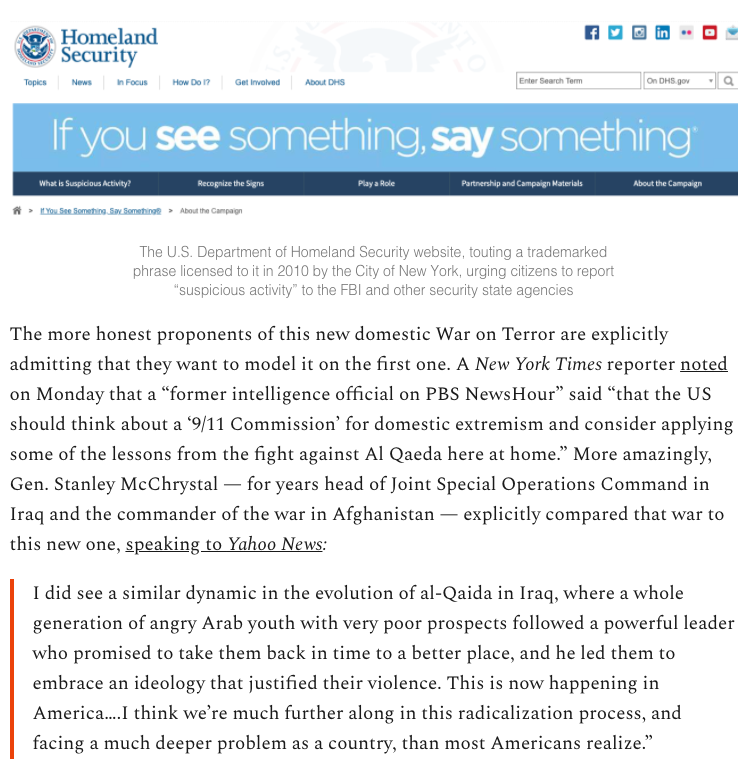 The more honest proponents of this new domestic War on Terror are explicitly admitting that they want to model it on the first one.