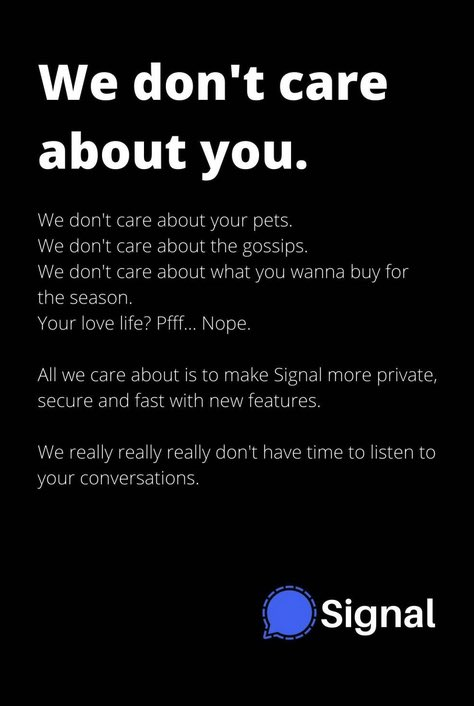 Signal: faz criptografia de ponta a ponta, não faz backup das mensagens em lugar nenhum. O único metadado armazenado é o seu número de telefone.