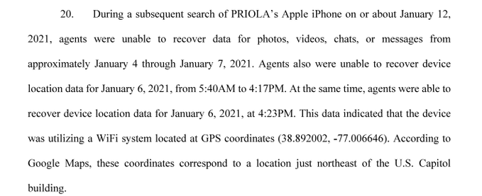 Aliás, a Apple foi a única empresa que foi nominalmente citada entre aquelas que ajudaram o DOJ a rastrear os invasores do Capitolio: