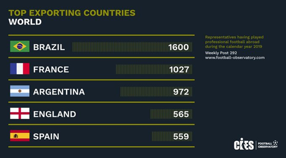 Francia es, después de Brasil, el país que más jugadores tiene jugando fuera de su liga. Es una estadística tremenda, ya que Brasil no es una liga europea y suele exportar mucho. Para que os hagáis una idea de lo poco que resiste la Ligue 1 para retener a sus grandes jóvenes.