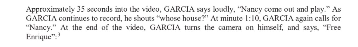 At one point, court papers say, Garcia also calls out, "Free Enrique!"