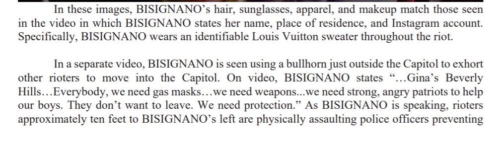 As Judge Harvey decides on the Senate dangler's release conditions, prosecutors unseal charges against Gina Bisignano, a Beverly Hills hair salon owner who led crowds at the Capitol riot w/a bullhorn.