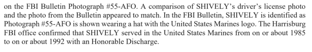 Shively pictured in a Marine Corps hat. Prosecutors say he served from 1985 to 1992.