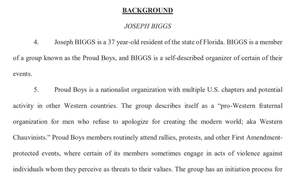 Biggs & crew started their march on the Capitol, court papers say, with chants of "F*ck Antifa!"