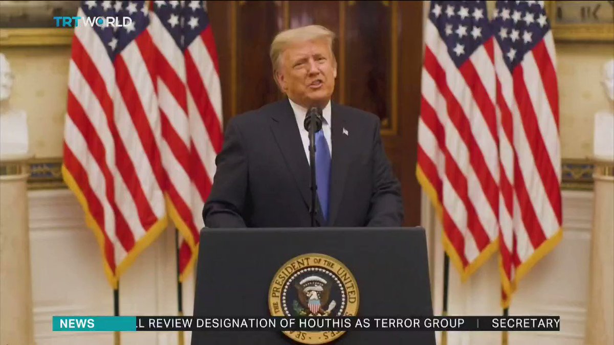 US President Donald Trump delivers his farewell address, in which he fails to mention President-elect Joe Biden