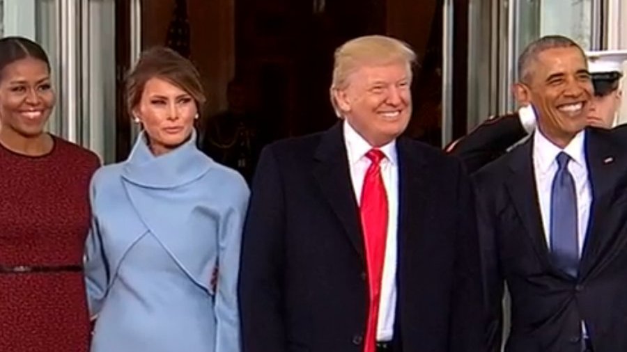 This Day, 2009: George W. Bush seemed happy to be relieved of the burdens of the presidency as he greeted his successor Barack Obama, on the North Portico (Photo/WWR)
