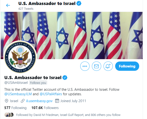 Also, the title on the embassy website wasn't changed, even though Friedman was removed from the website, further suggesting that there wasn't an actual policy change here, more like an overzealous social media manager.
