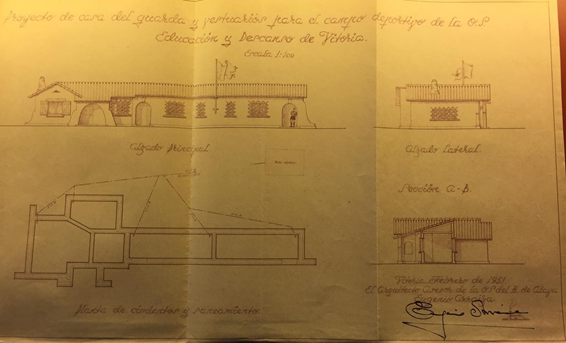 A principios de los 50, se construyó la casa del guarda y los vestuarios para el campo deportivo que la Obra Sindical “Educación y Descanso” de #Álava poseía en #Mendizorroza con un coste de 93.904, 68 pesetas.